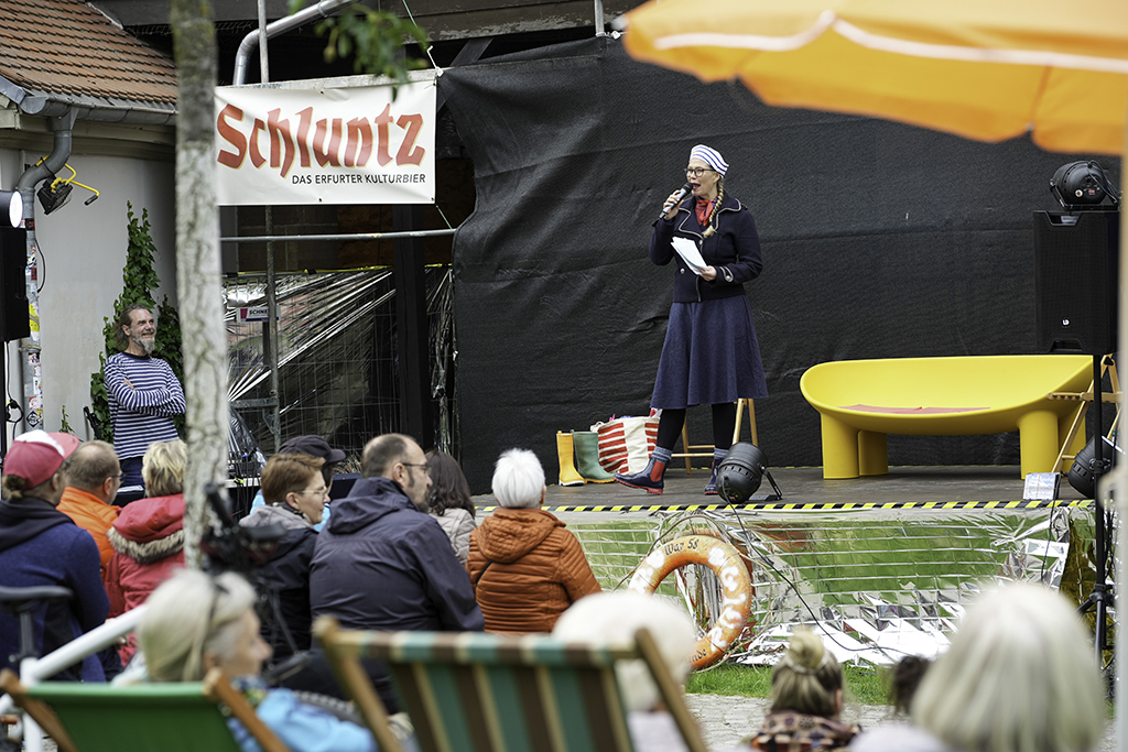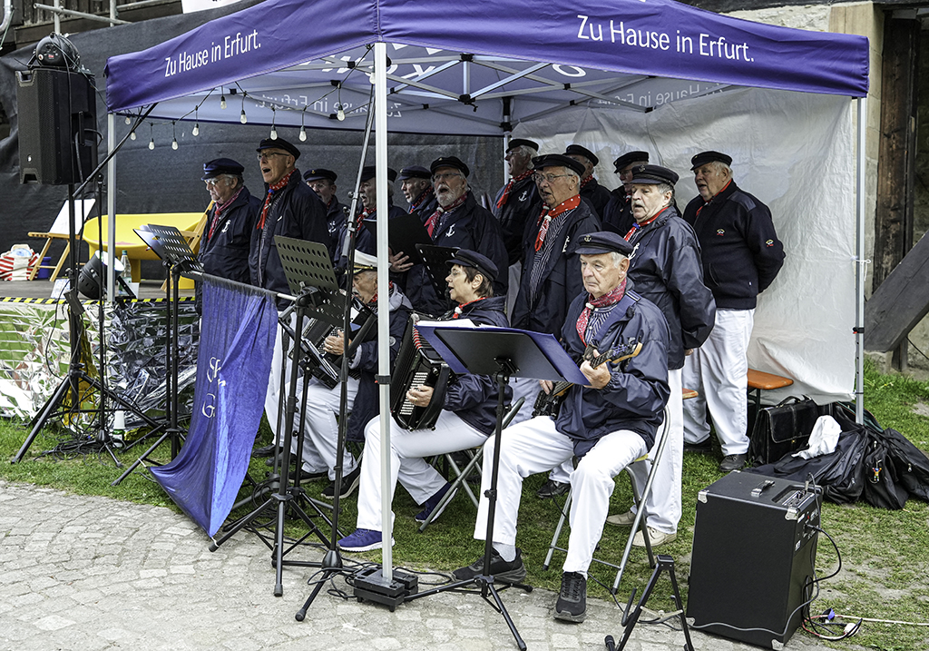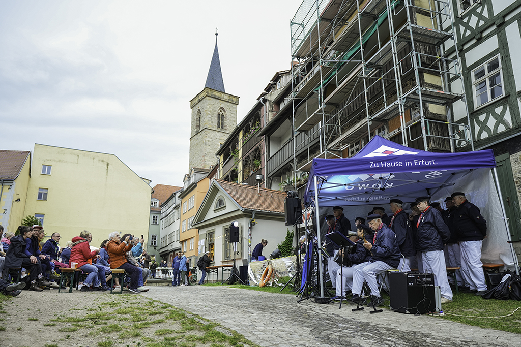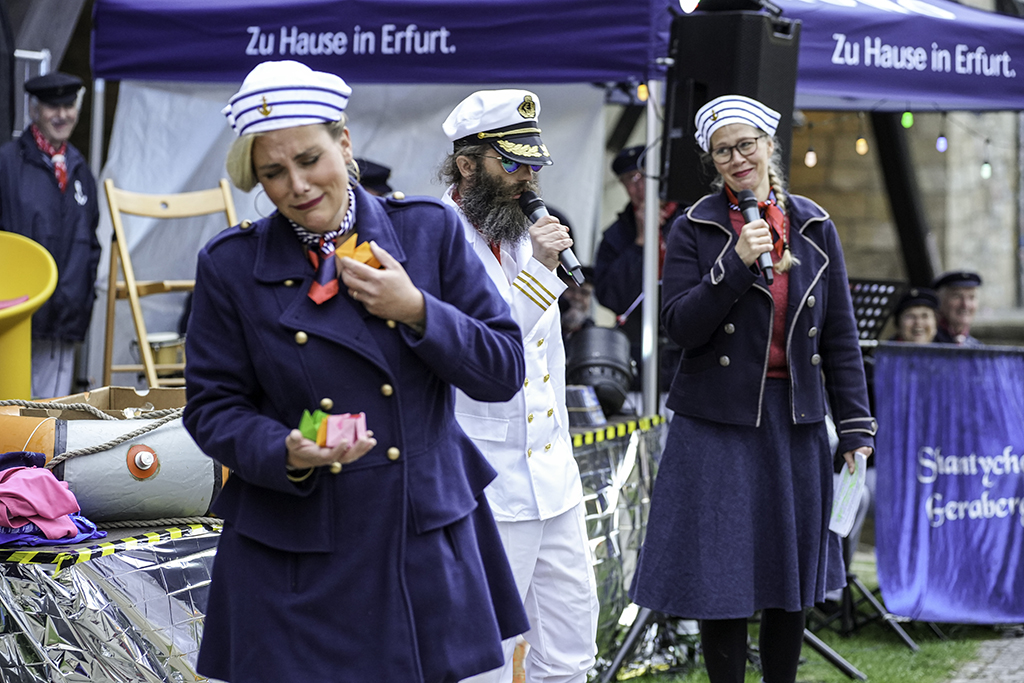 Die Dampfschiffgesellschaft „Erfordia“ will diesen Traum verwirklichen und legte sich dafür am 24. Mai 2025 hinter der Krämerbrücke mächtig in die Riemen! Es gab Seemannsgarn auf dem Sofa, Bademoden an der Furt, das Thüringer Kapitänsdinner und den ersten Shanty-Chor des Freistaats – aus Geraberg!